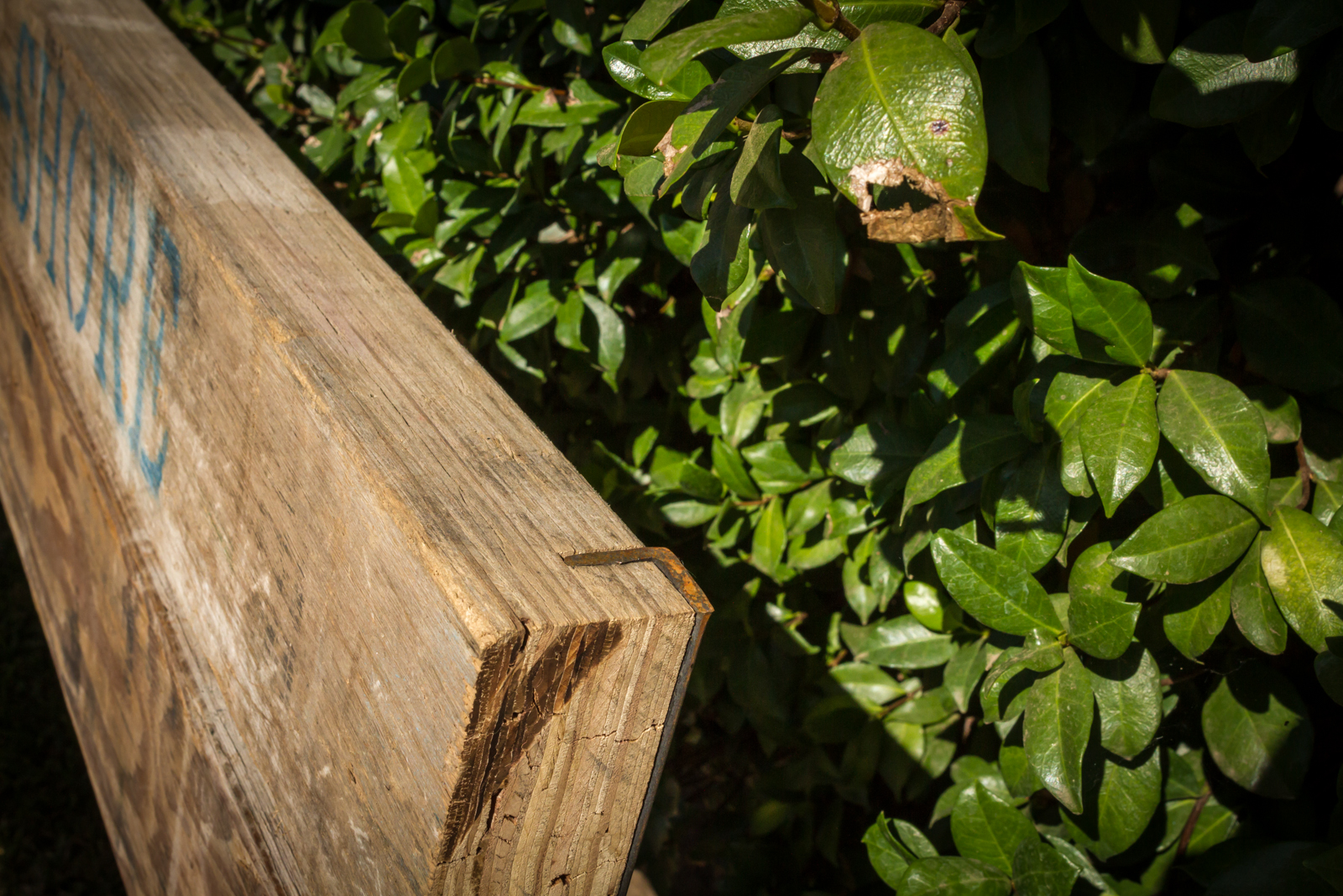 The back of the bench needed to complement the seat and be of similar proportion. Given this criteria I decided to splice the angle into the wood members and extend the frame beyond to create an open frame. This served to create both a better proportioned bench as well possibly be a frame work for something to grow onto.